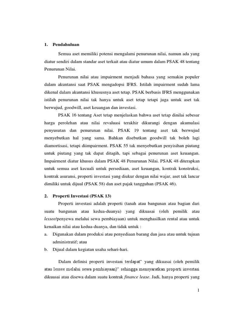 Psak 13 tentang properti investasi telah disahkan oleh dewan standar akuntansi keuangan pada tanggal 29 november 2011. Tips dan cara menghindari penipuan bisnis investasi. Properti investasi diakui pertama kali pada harga perolehannya, setelah itu entitas dapat memilih menggunakan model biaya atau model nilai wajar dalam pengukuran selanjutnya dari properti investasi.