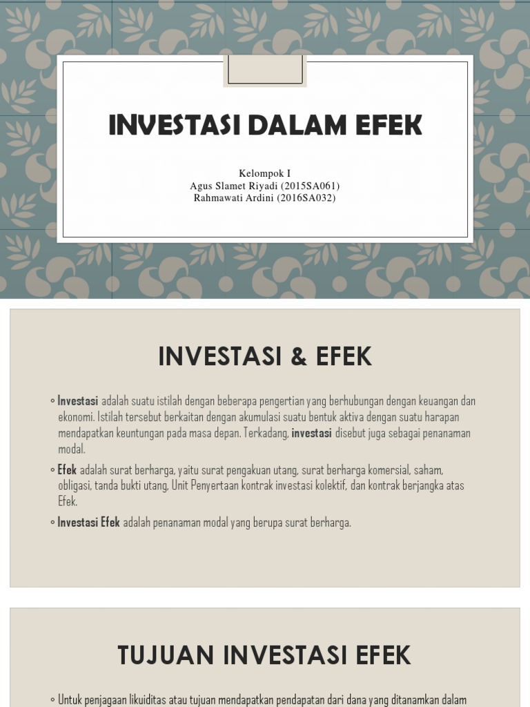 Pemeriksaan surat berharga dan investasi menurut psak no.1 hal.1.10 (iai:2002) : Ia terbukti melakukan transfer uang rp1,6 miliar dan merekayasa dokumen laporan keuangan. Diantara investasi surat berharga tersebut yang paling populer adalah deposito di kalangan masyarakat kita namun yang akan kita bahas lebih mendalam dalam postingan selanjutnya adalah instrumen saham, obligasi dan reksadana.